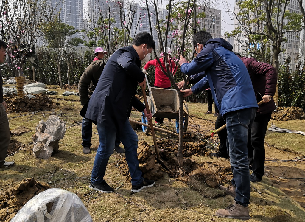鑒于目前尚處于疫情防控階段,大家戴上口罩、手套,在做好自身安全防護(hù)工作的同時(shí),一起來到新搬遷的集團(tuán)公司綠化帶的空地上,他們有的揮鍬鏟土,有的扶苗填坑,干得勁頭十足、熱火朝天,大家分工協(xié)作,認(rèn)真地完成著每一道工序,精心地栽下每一棵樹苗。經(jīng)過大家一上午的辛勤勞動(dòng),集團(tuán)公司的綠化環(huán)境得到了很大的改善。