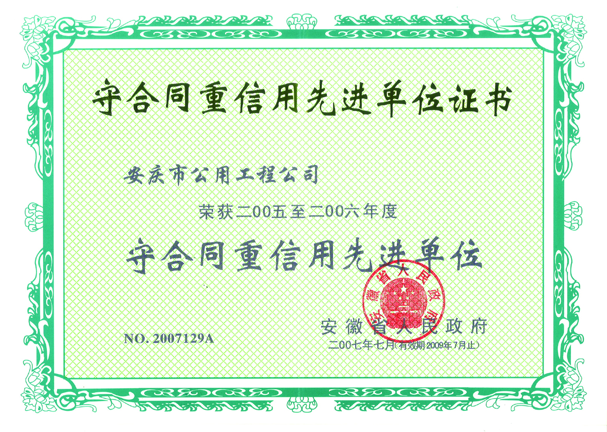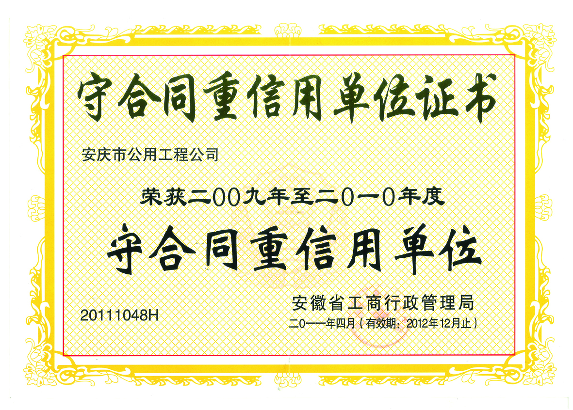 市級守合同重信用單位